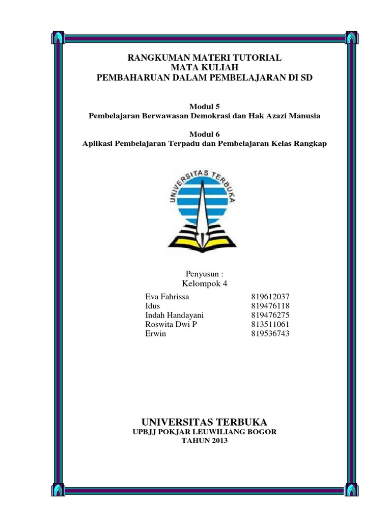 Jawaban modul 6 pembelajaran kelas rangkap. Adalah penting sejak awal untuk saling sepakat mengenai arti dari pembelajaran kelas rangkap dan apa saja yang berhubungan dengannya. Anisatul Mufarokah 858782644 Fitria Karulina 858778501 Henni Pranata 858778526 Nurul Hidayah 858778644 Purin Marsela 858778683 Rohmatun Maspiyah. Setelah membaca dan mempelajari materi pembelajaran kerjakan soal latihan dan penugasan mandiri.