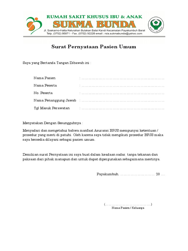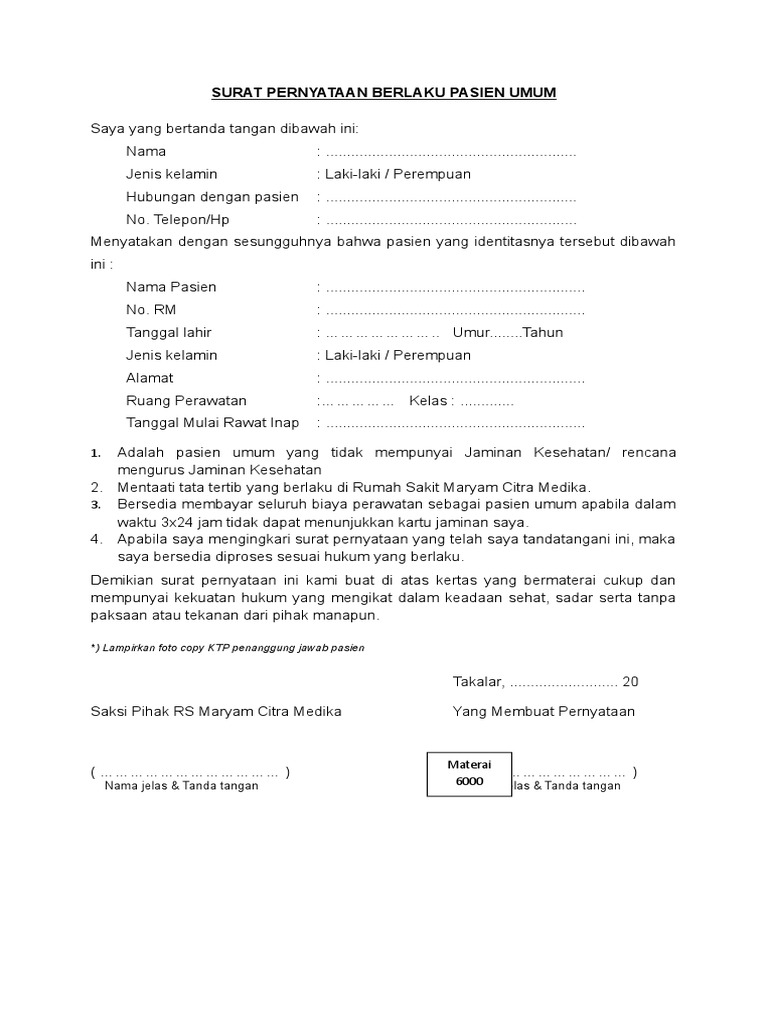 Surat Persetujuan Rawat Inap Pasien Umum Doc
